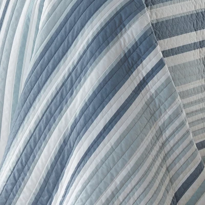 - LEVTEX TRURO QUILT BED SET: A versatile blue stripe bedding set consisting of a quilt and matching pillow shams. Used by itself, as a layering piece or as a bedspread, this bedding set is extremely versatile. The classic coastal design will immediately transform your bedroom.